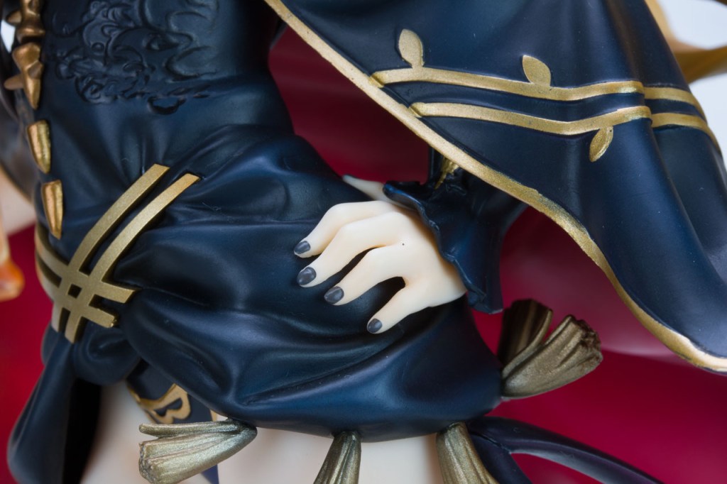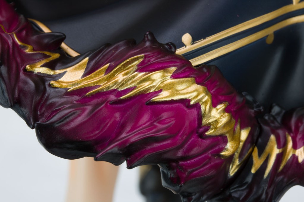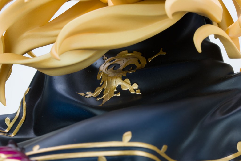 As you can see in the upper part of her outfit, they did a great job at the detailing, sculpting, and paint! I’m really happy with the outcome. There are a few errors like some marks on the black areas of the outfit and some paint transfer but it’s not that noticeable so I’m okay with it! I’m really loving the skulls and the gold metallic highlights. Looks very clean.