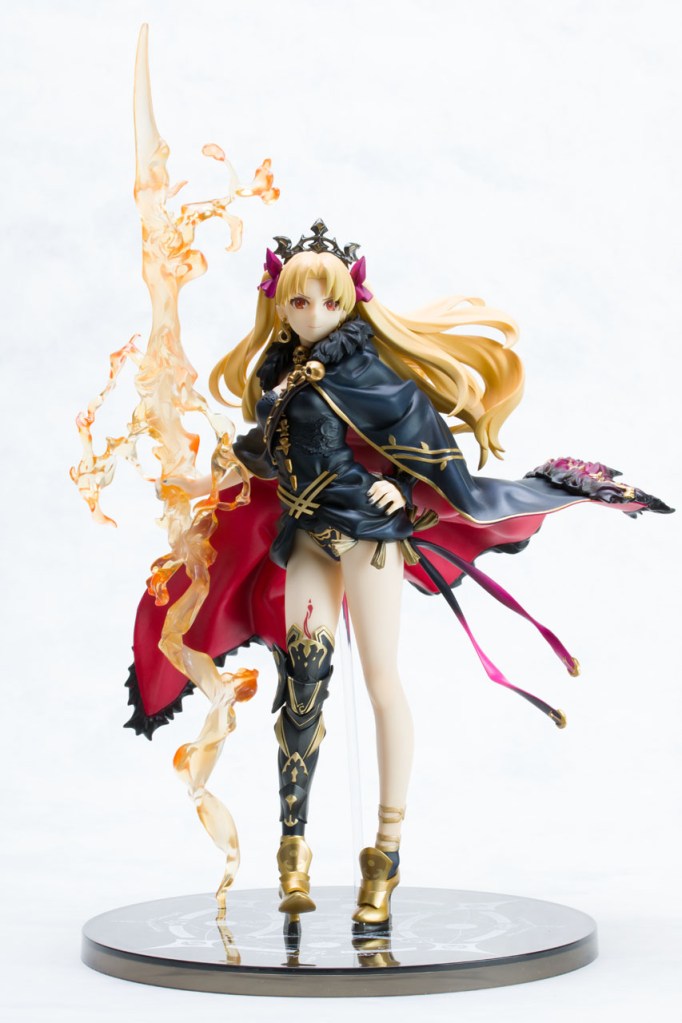 Ereshkigal is standing at 10inch (260mm) scaled at 1/7. I don’t think that measurement includes her spear though, id says with the spear it’s about 13inch. Ereshkigal comes in 4 parts. Herself, Base, base peg support, and her spear.