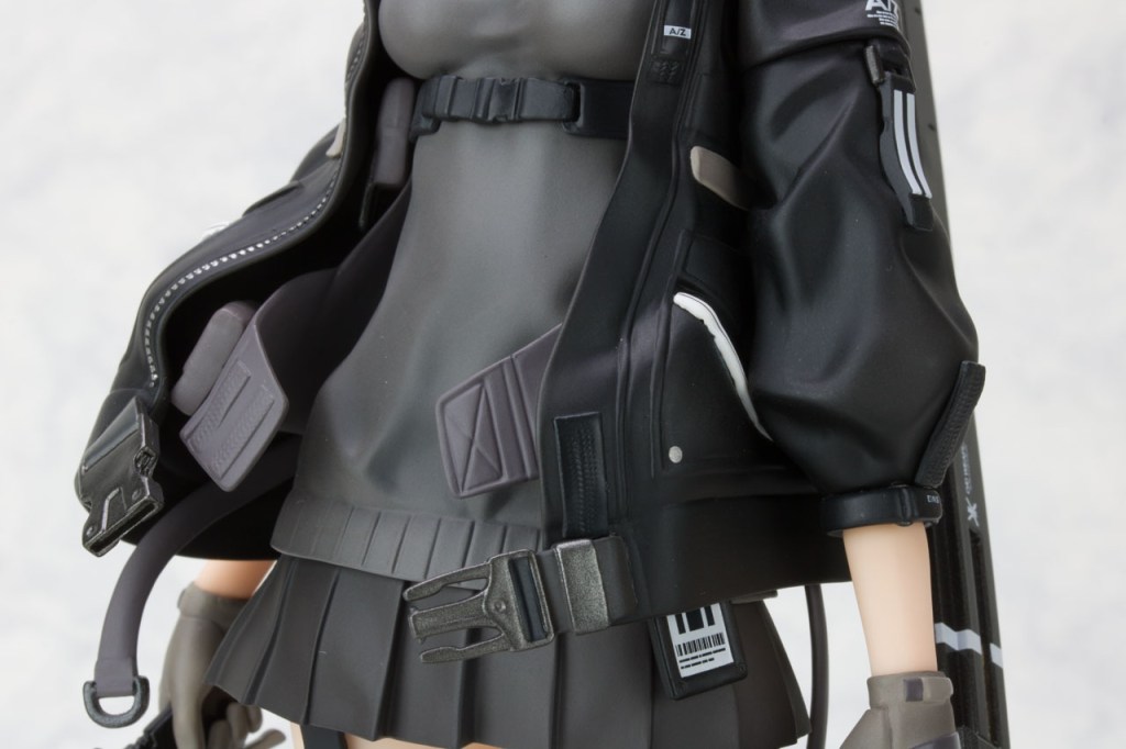 Her jacket is packed! There are so many cool things about it. The mix between combat gear and school wear just fits so well. It really reminds me of my PSO2 character (´꒳` ). It’s also layered inside as you can see. It’s a nice touch to not hide layered clothing, and they took advantage of that by giving it an effect as it was blowing in the wind. And of course BELTS AND STRAPS!