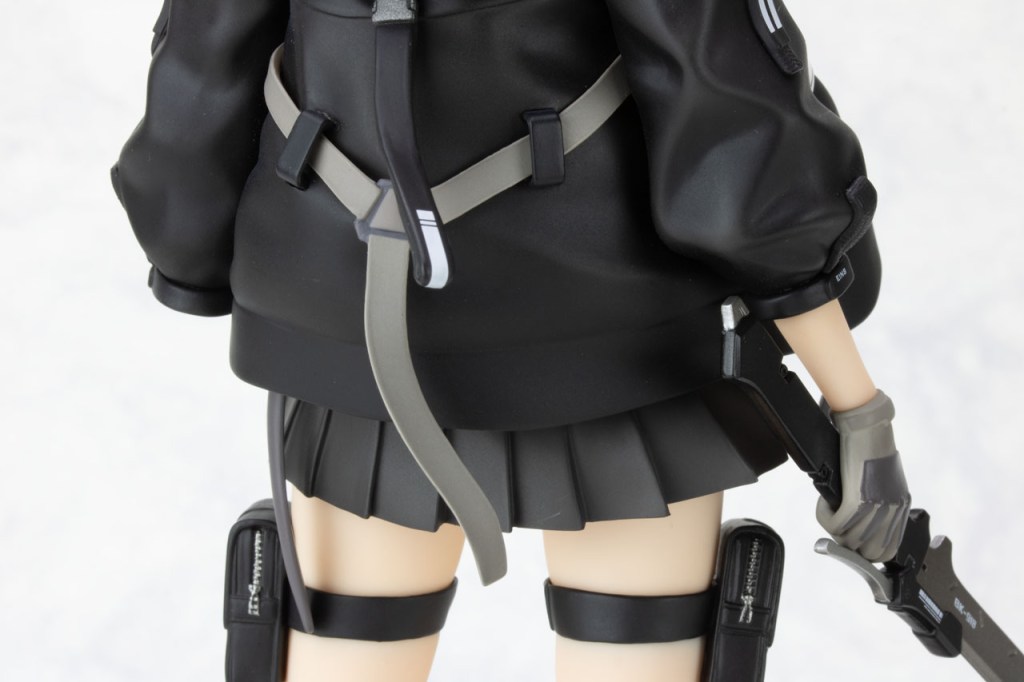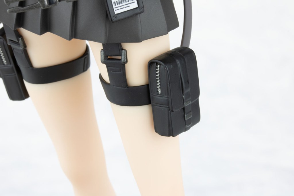 Here we have her lower half. She’s wearing a skirt, no surprise here. Not only that, we have some combat leg pouches equipped. It’s a really nice addition to her overall aesthetic.